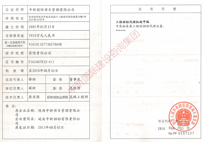 工程招标代理机构甲级 可承担各类工程的招标代理业务。