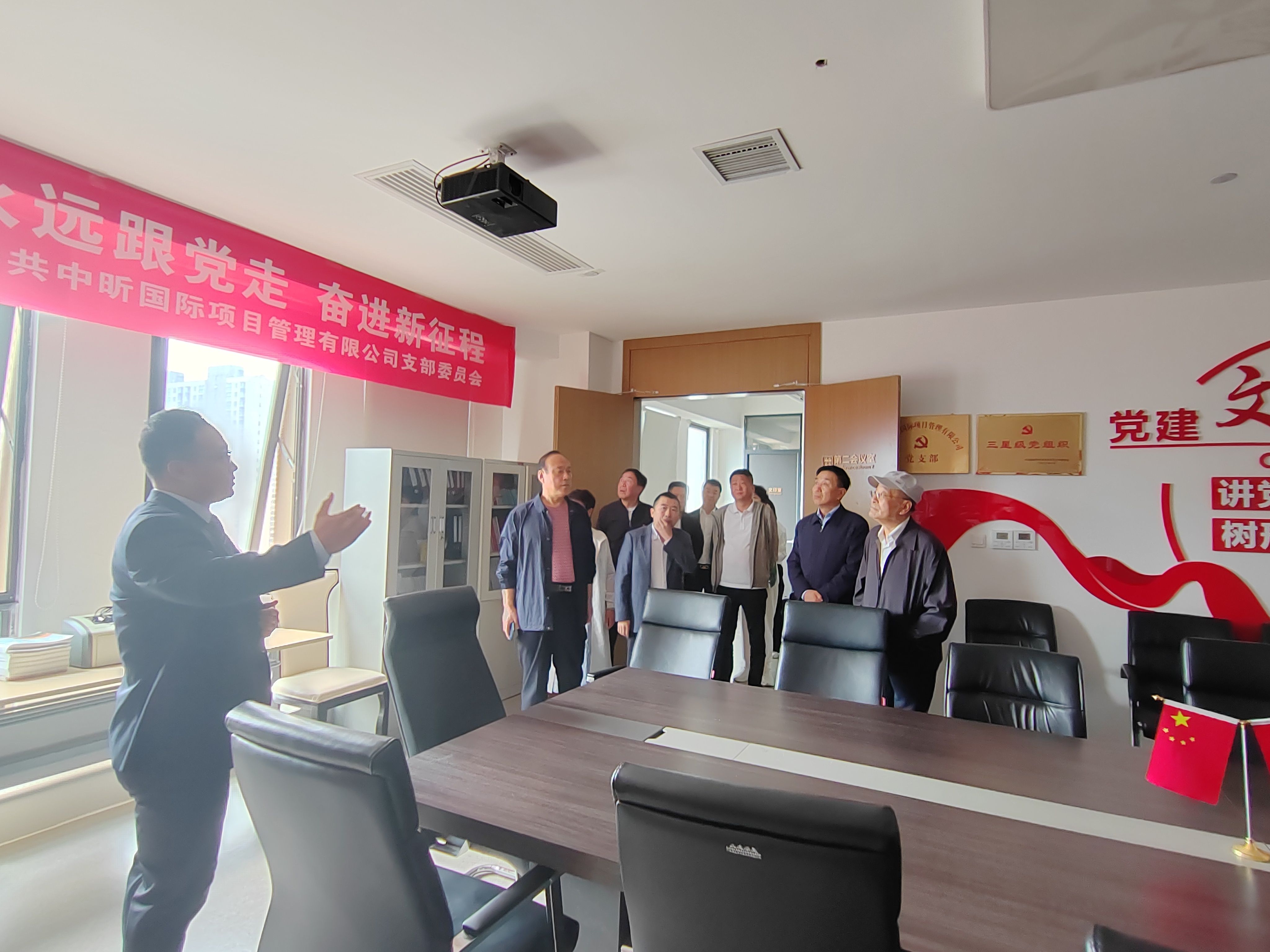 随后,薛总和任会长一行在会议室进行了座谈会。在观看完公司简介视频后,双方领导分享了彼此感悟并交流了意见,任会长对中昕的各个项目表示肯定。会议现场氛围愉悦,交谈融洽。